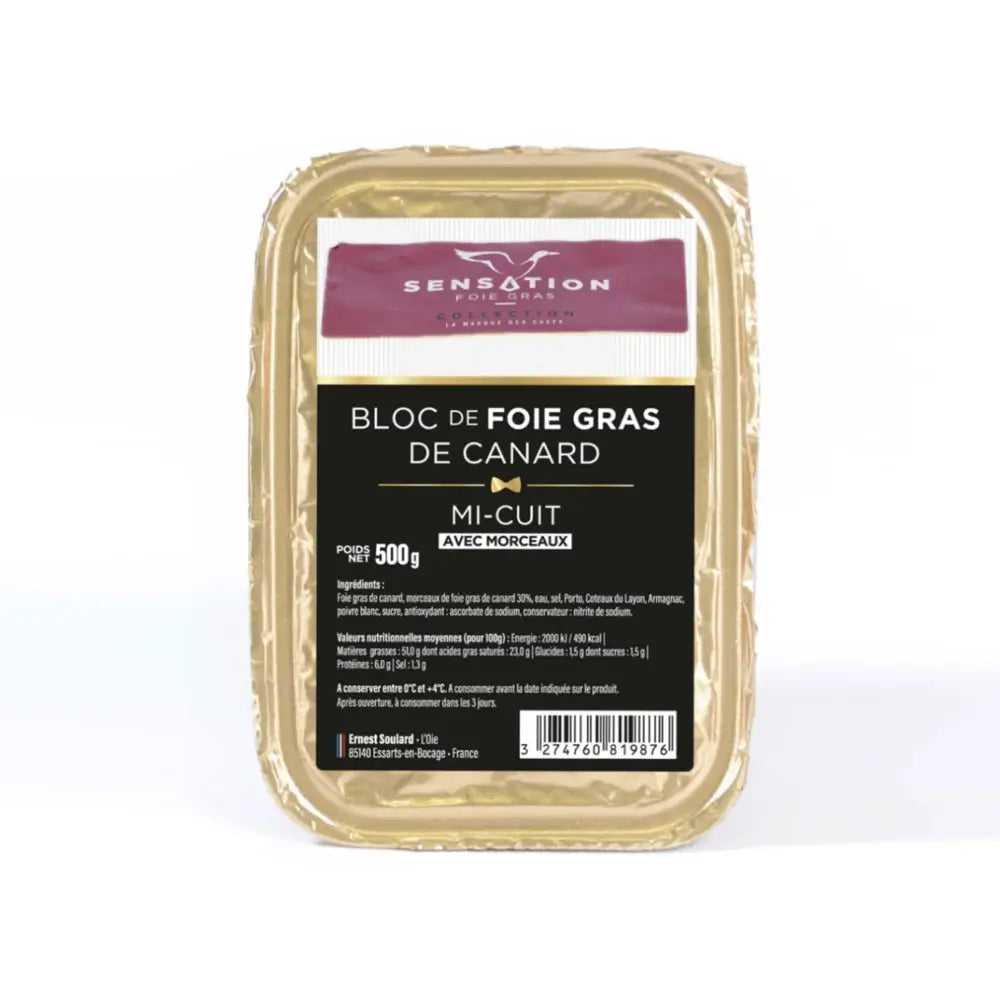 Bloc foie gras canard 30% morceaux barquette 500g - Origine France